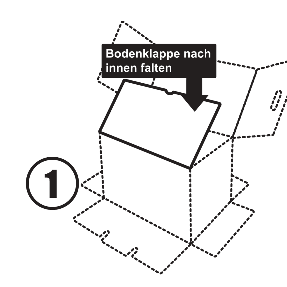 - Der Boden der Box ist ausgestanzt. Zuerst wird der kleiner Teil des Bodens in die Box gefaltet.